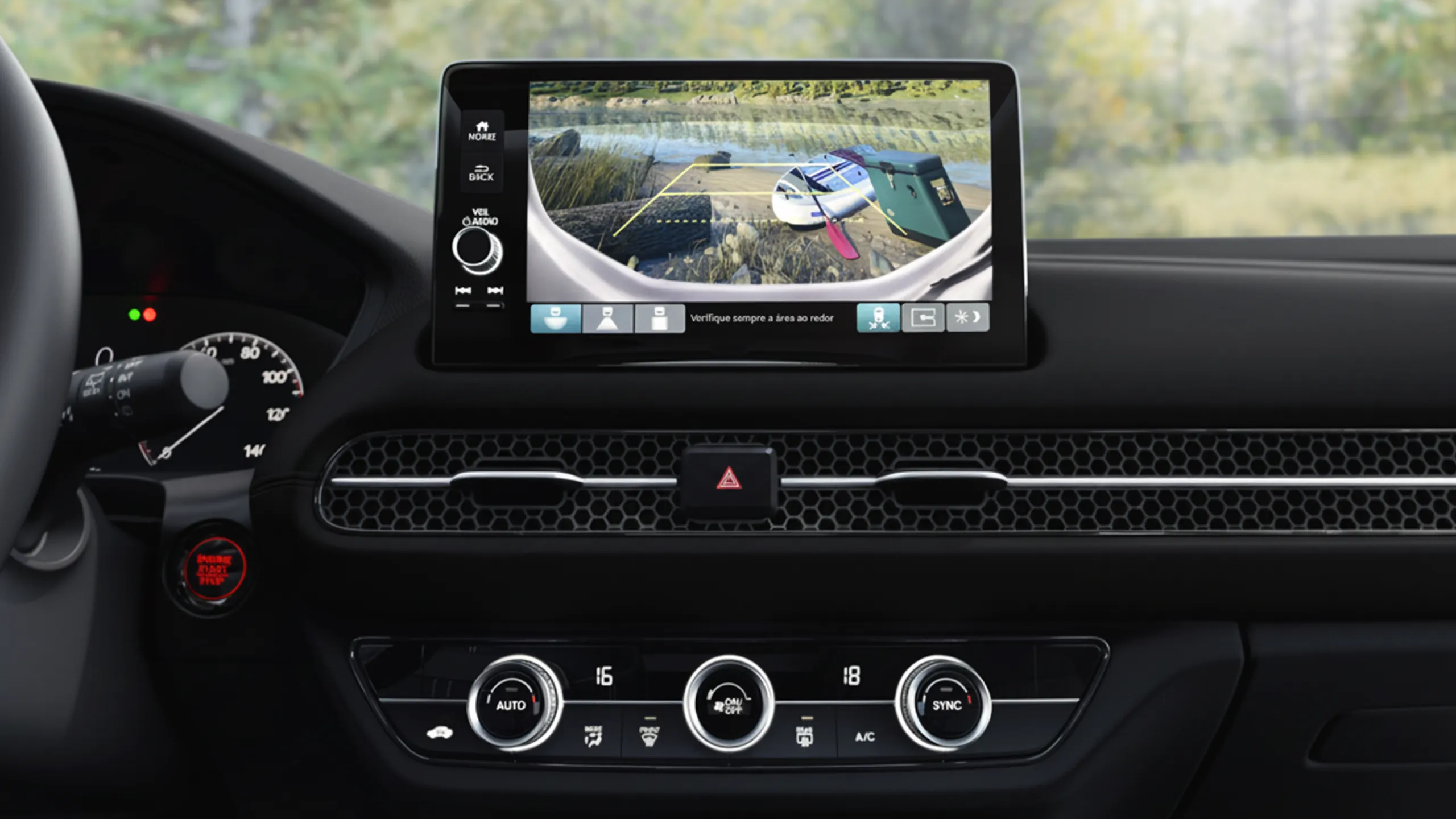 Cámara de reversa con 3 ángulos que amplía la visión del área trasera para que evites cualquier imprevisto y guias dinamicas que marcan la trayectoria del vehículo.
